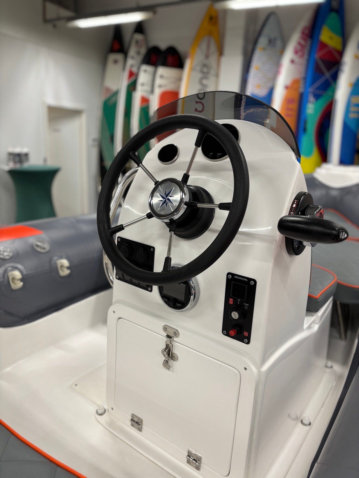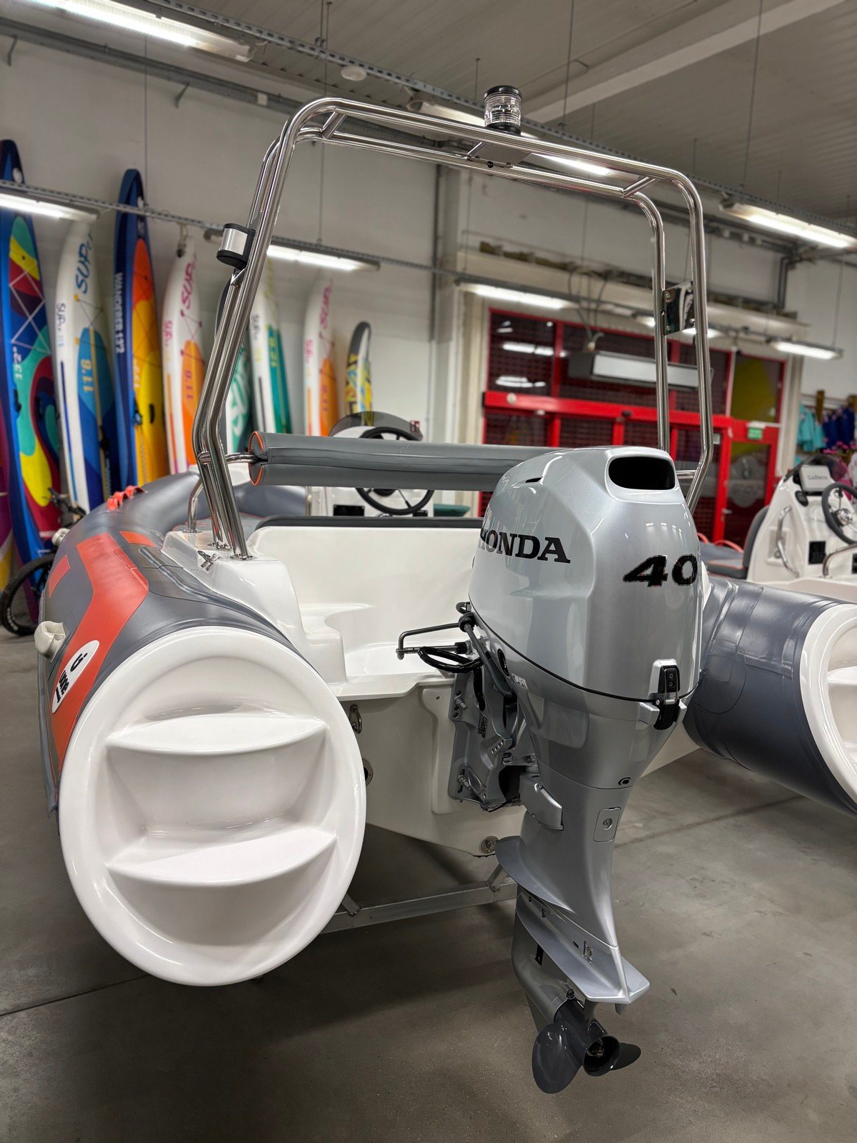 Combining sleek aesthetics with thoughtful functionality, this 4.30 m RIB offers practical comfort for your coastal cruising, tender operations, and family outings. The spacious layout allows for effortless movement and ample seating options so everyone onboard can enjoy the escape in style.