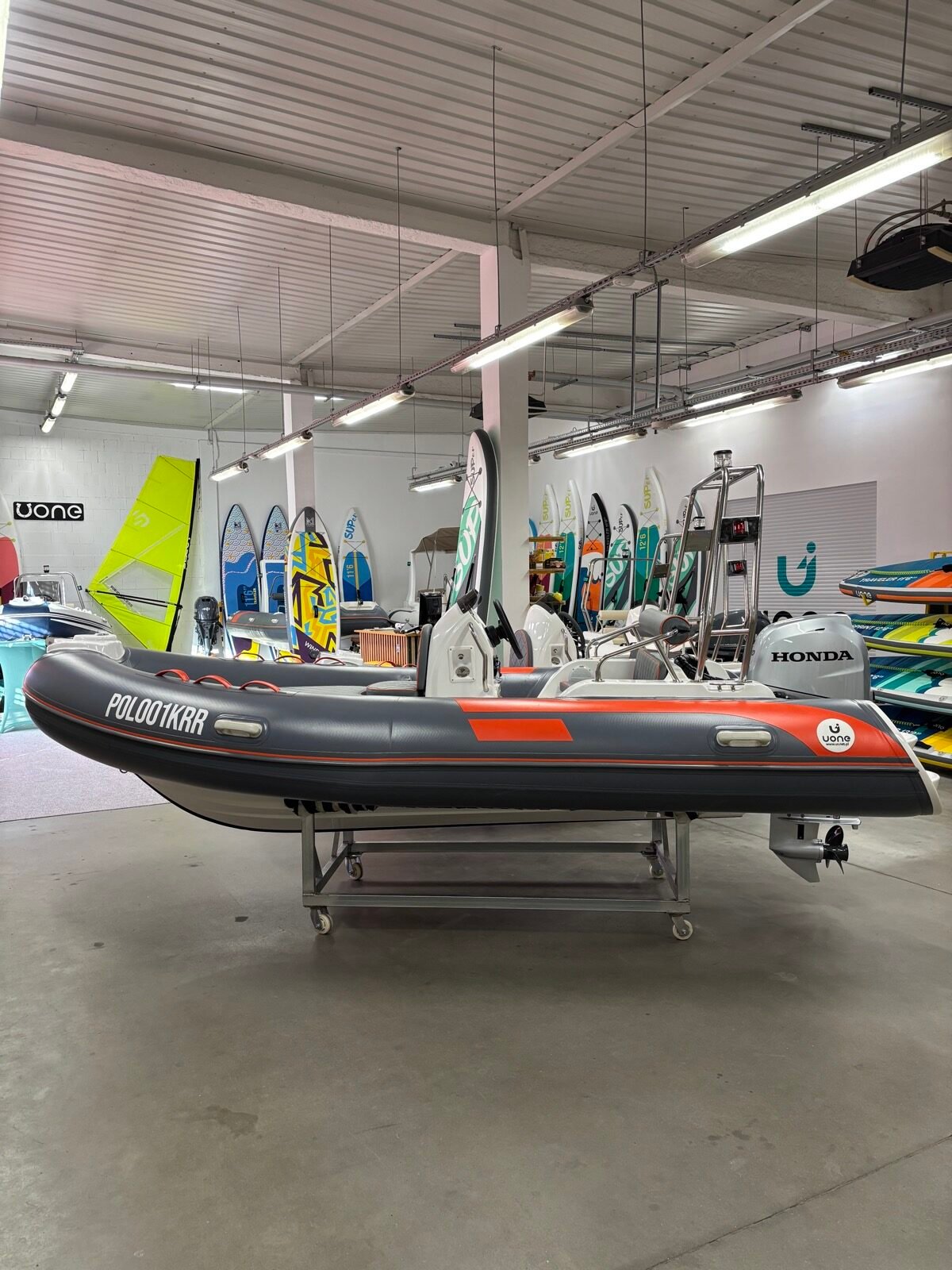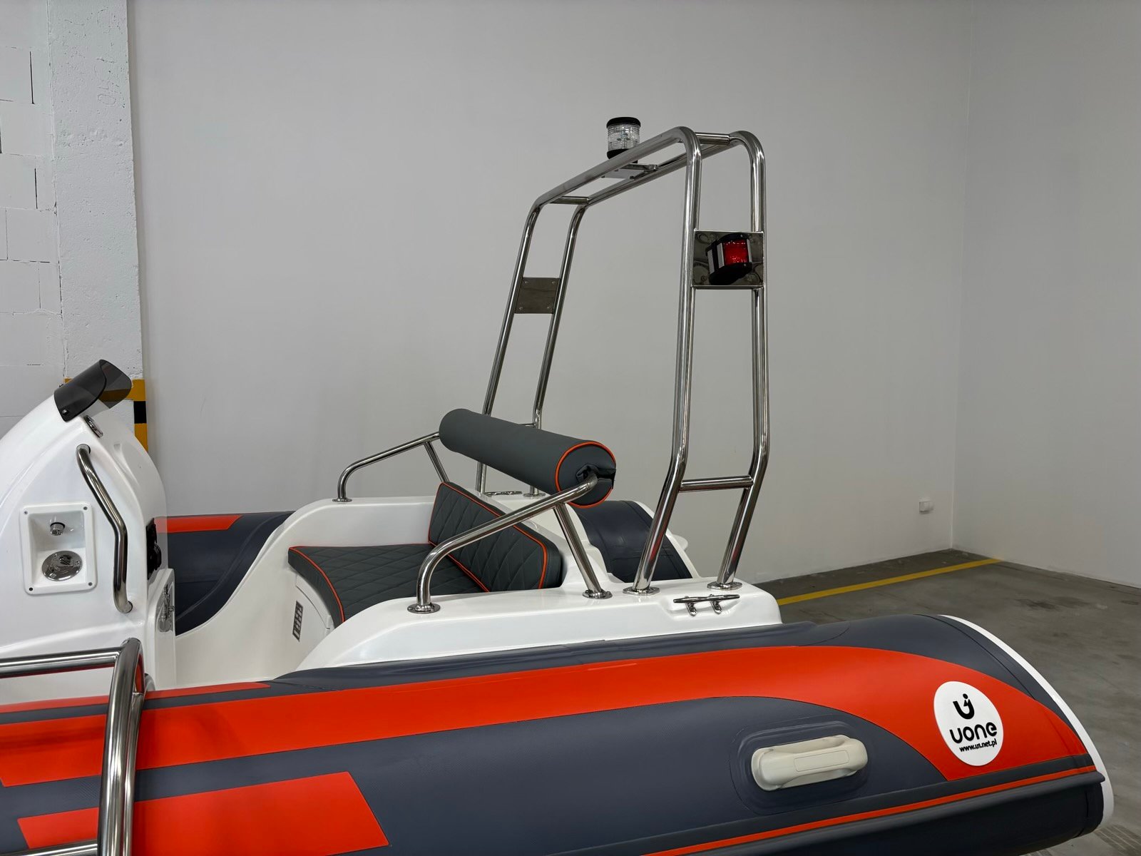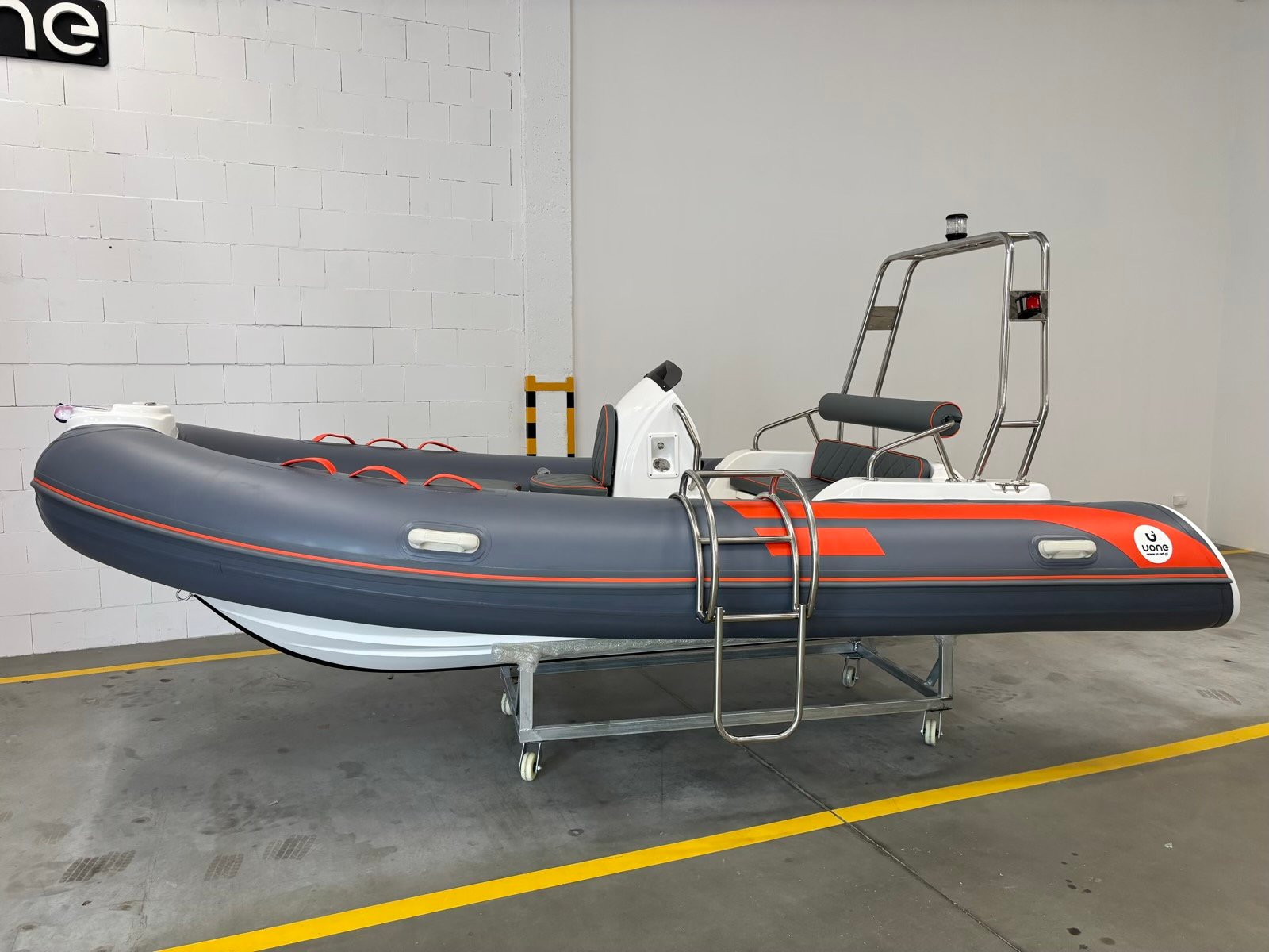 UONE U430 LX – Premium 4.30 m RIB designed for versatile leisure use, combining sporty performance, modern styling, and practical comfort. Ideal for coastal cruising, tender operations, and family outings, it offers a stable hull, spacious layout, and dependable handling on the water.
